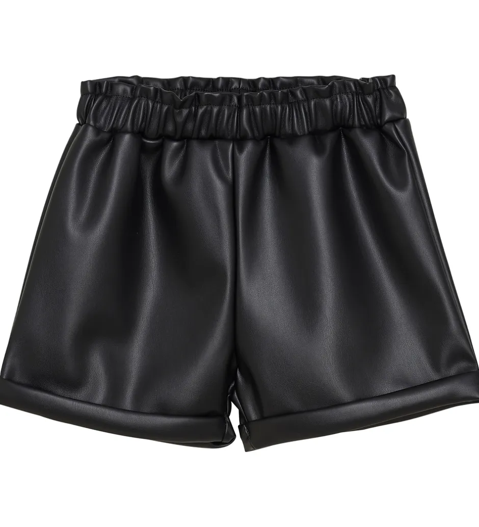 Seje Minymo shorts i ensfarvet sort i imiteret skind.