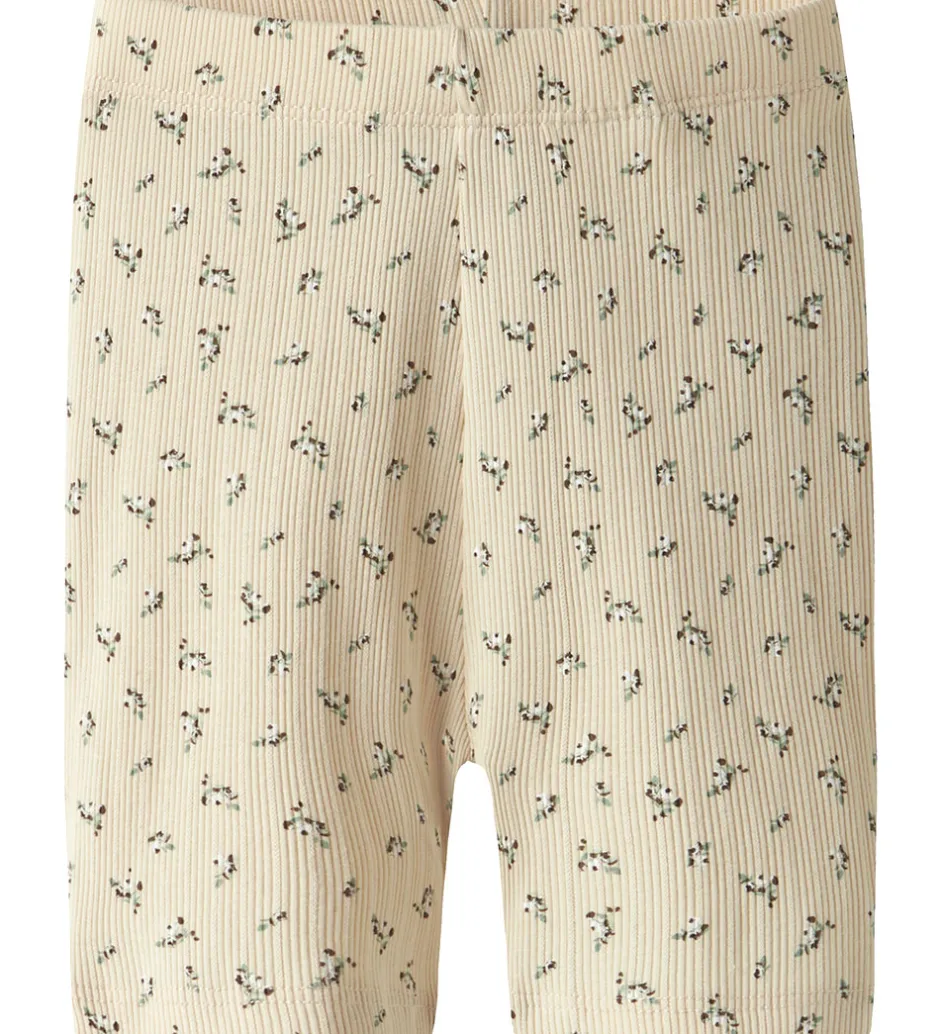 Fine Name It cykelshorts i en lys, gul nuance med et delikat blomstermønster og en fin ribstruktur. Name It designet er enkelt og moderne, hvilket gør dem nemme at matche til enhver garderobe.