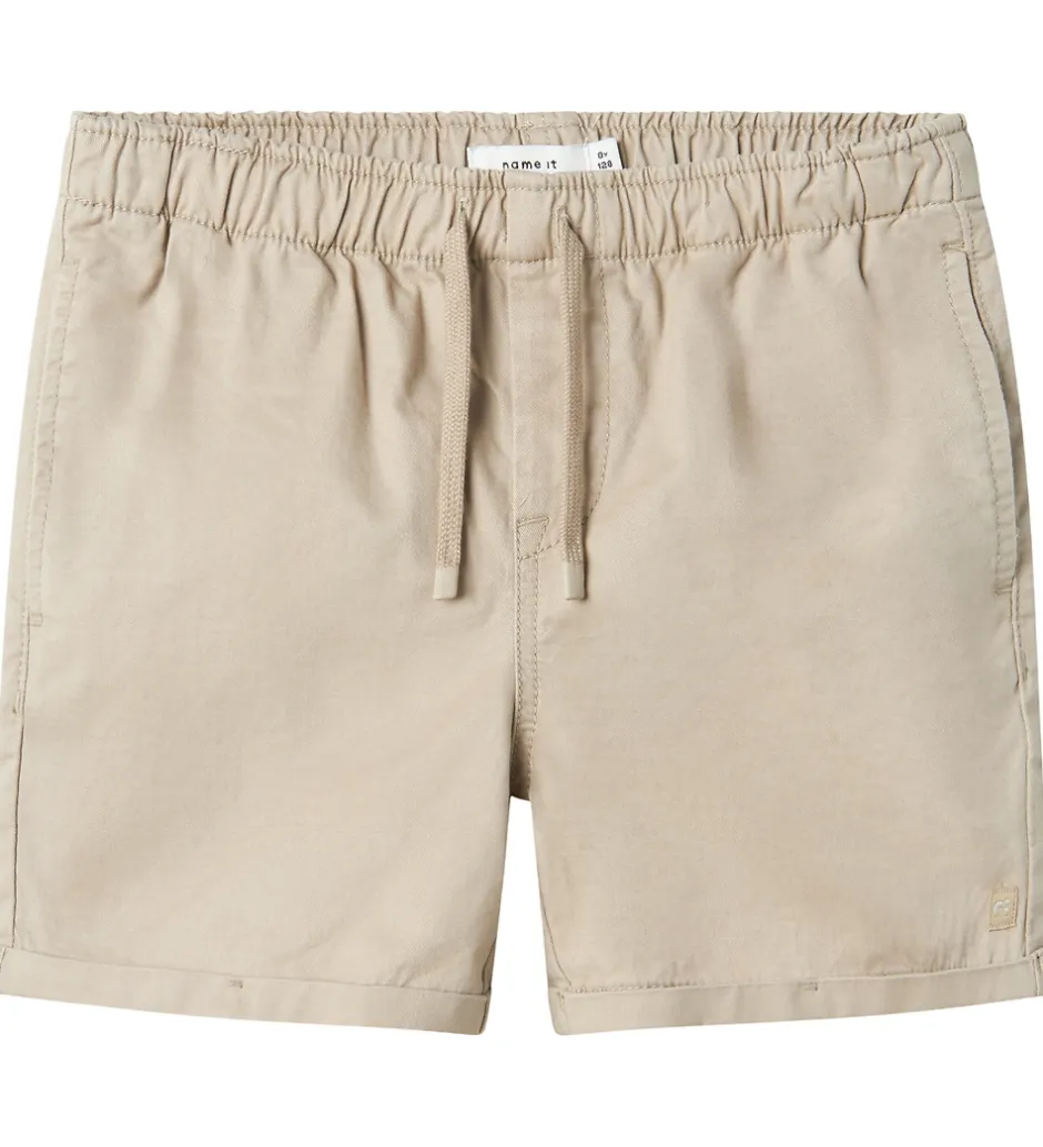 Tidløse Name It shorts i en klassisk beige farve med en enkel twill struktur. Name It har designet shortsene med en elastisk talje og dekorativ snørre, som sikrer en god pasform. De har diskrete sidelommer og en baglomme for ekstra funktionalitet.