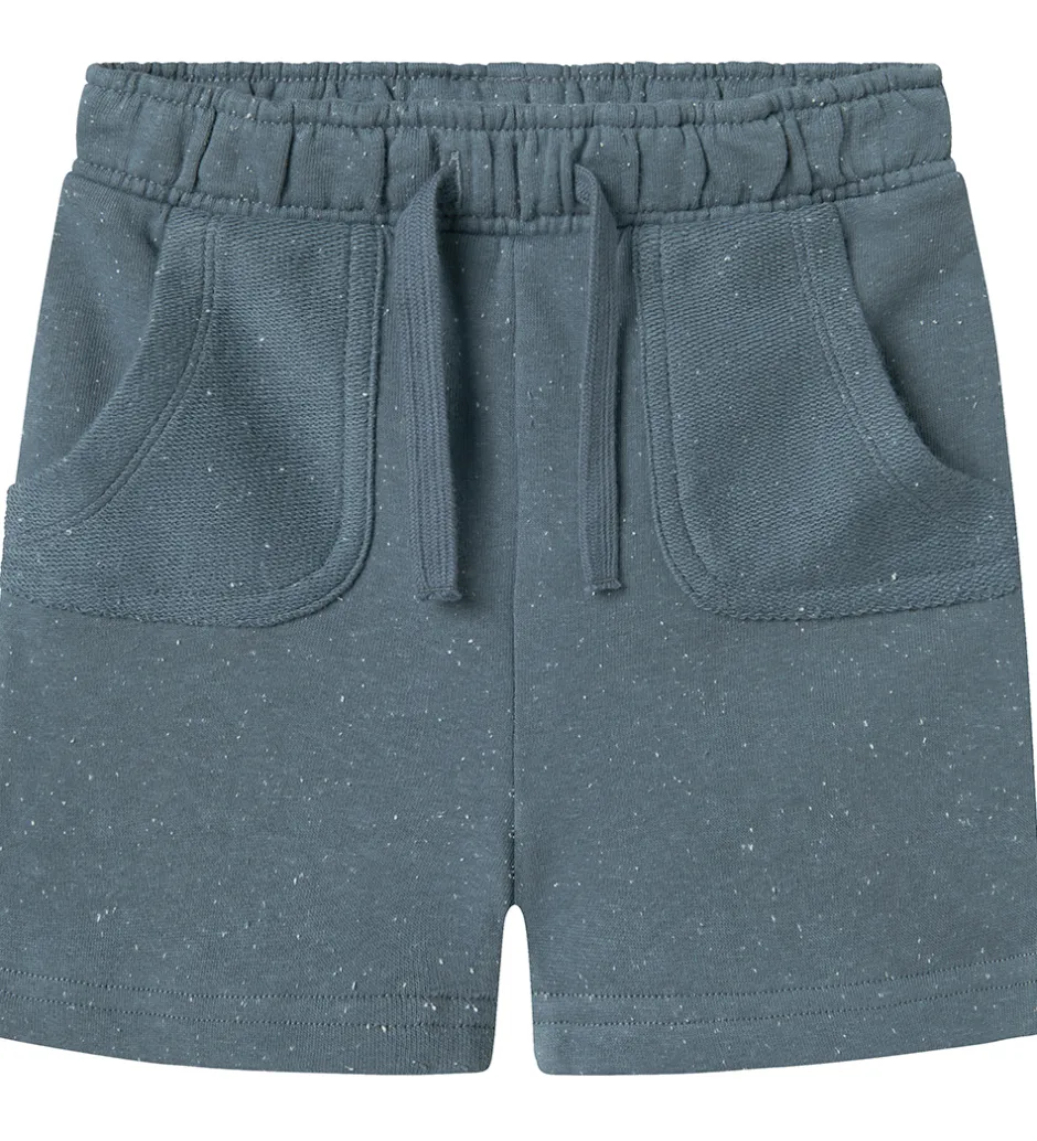 Stilfulde Name It shorts i en afdæmpet gråblå farve med diskrete pletter i hvid for en moderne finish.