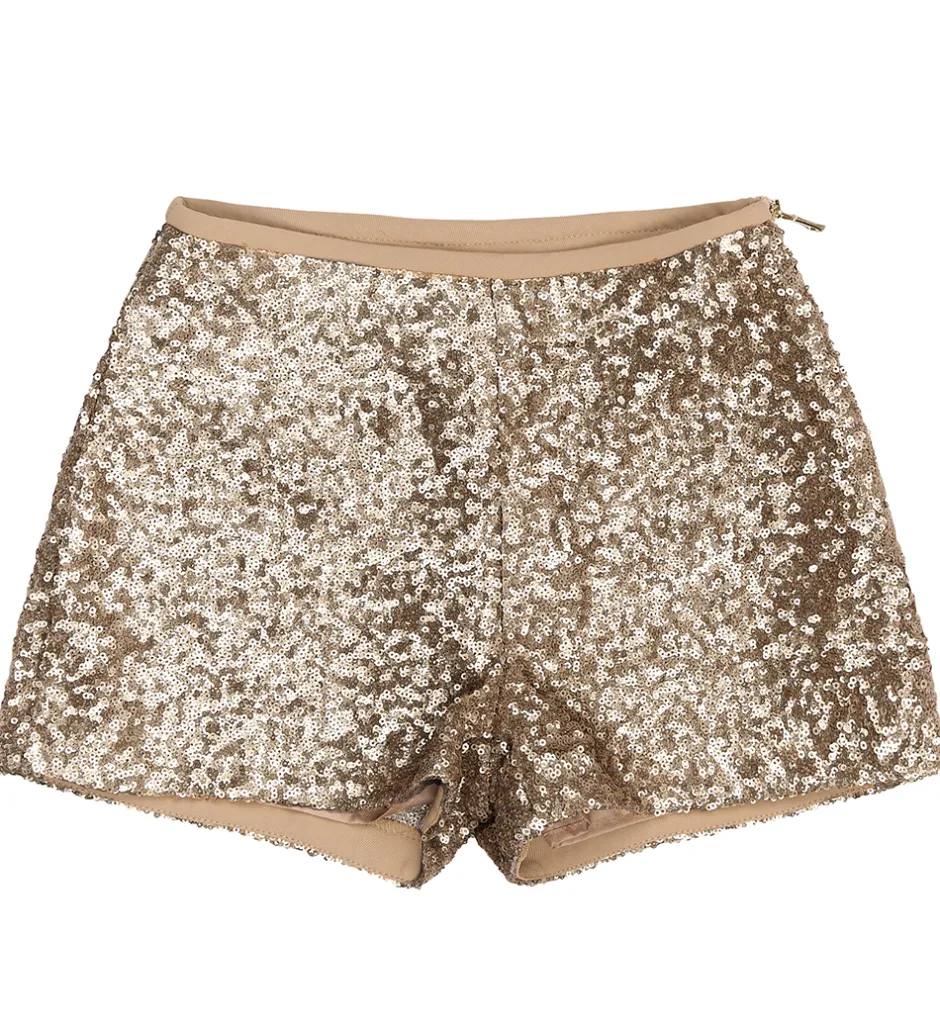 Flotte shorts fra The New med et skinnende pailletdesign i guld, der giver et elegant udtryk. The New shortsene har en enkel lynlås i siden og en blød talje, der sikrer en behagelig pasform.