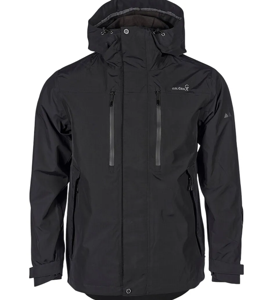 Isbjörn Of Sweden skaljakken åbnes fortil ved hjælp af en lynlås med fleeceforet hagebeskytter og en dobbelt, udvendig vindstolpe, som lukkes til med magnetknapper.