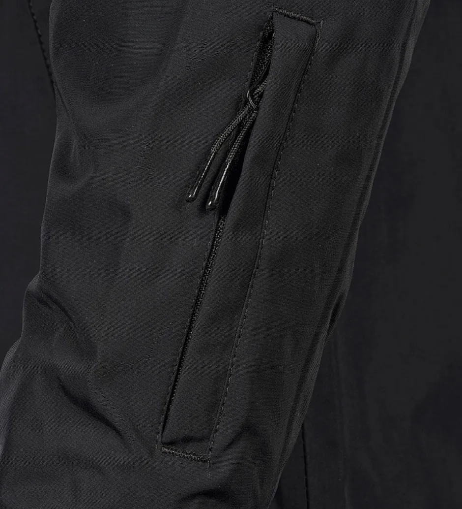 Ærmernes åbninger har velcrojusteringer og snefang med brede, elastiske kanter.