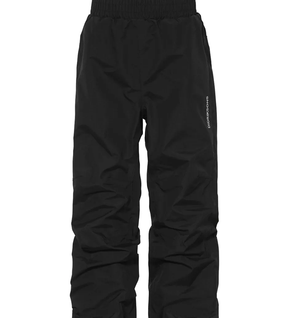 Didriksons skalbukserne har en bred elastikkant i livet, som kan justeres med en elastiksnøre på indersiden. Skalbukserne er også forsynede med velcrostropper, som gør det muligt at fastgøre seler