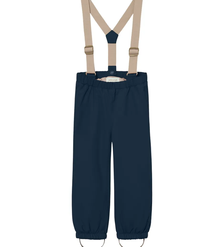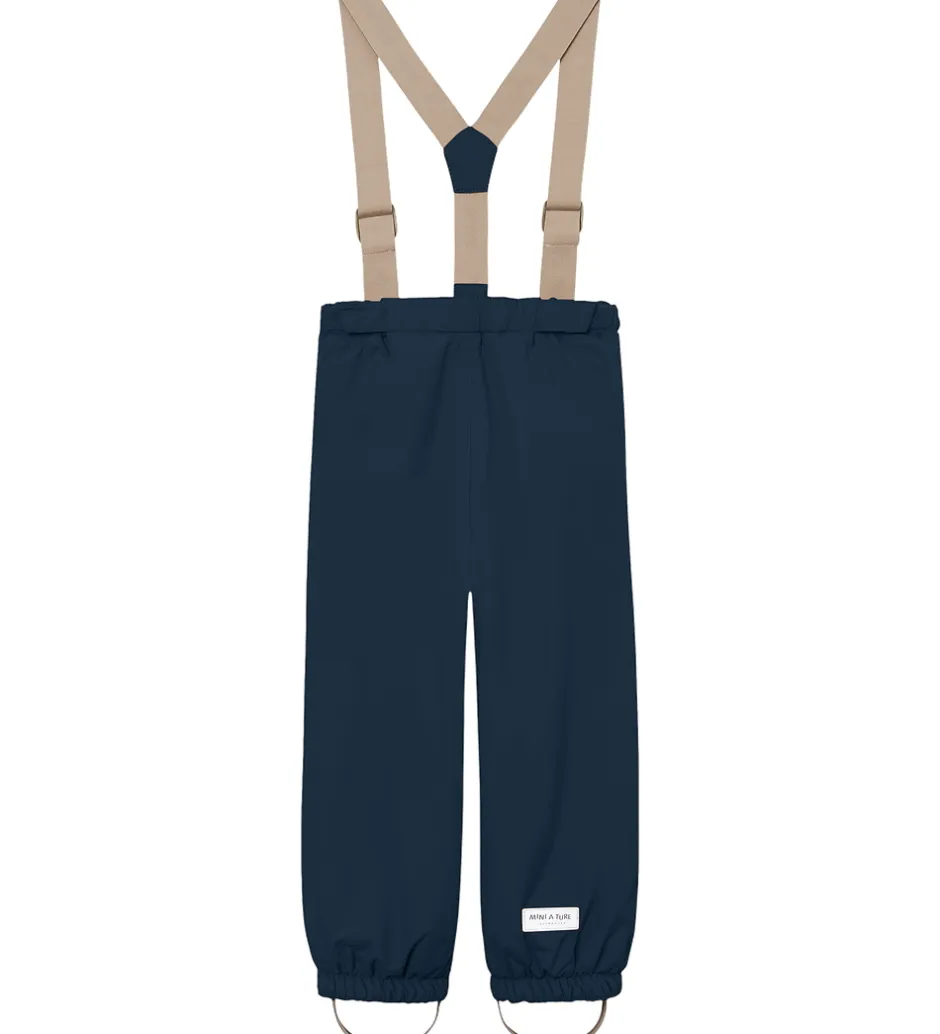 Fine Mini A Ture skibukser i navyblå. Skibukserne er med beige for.