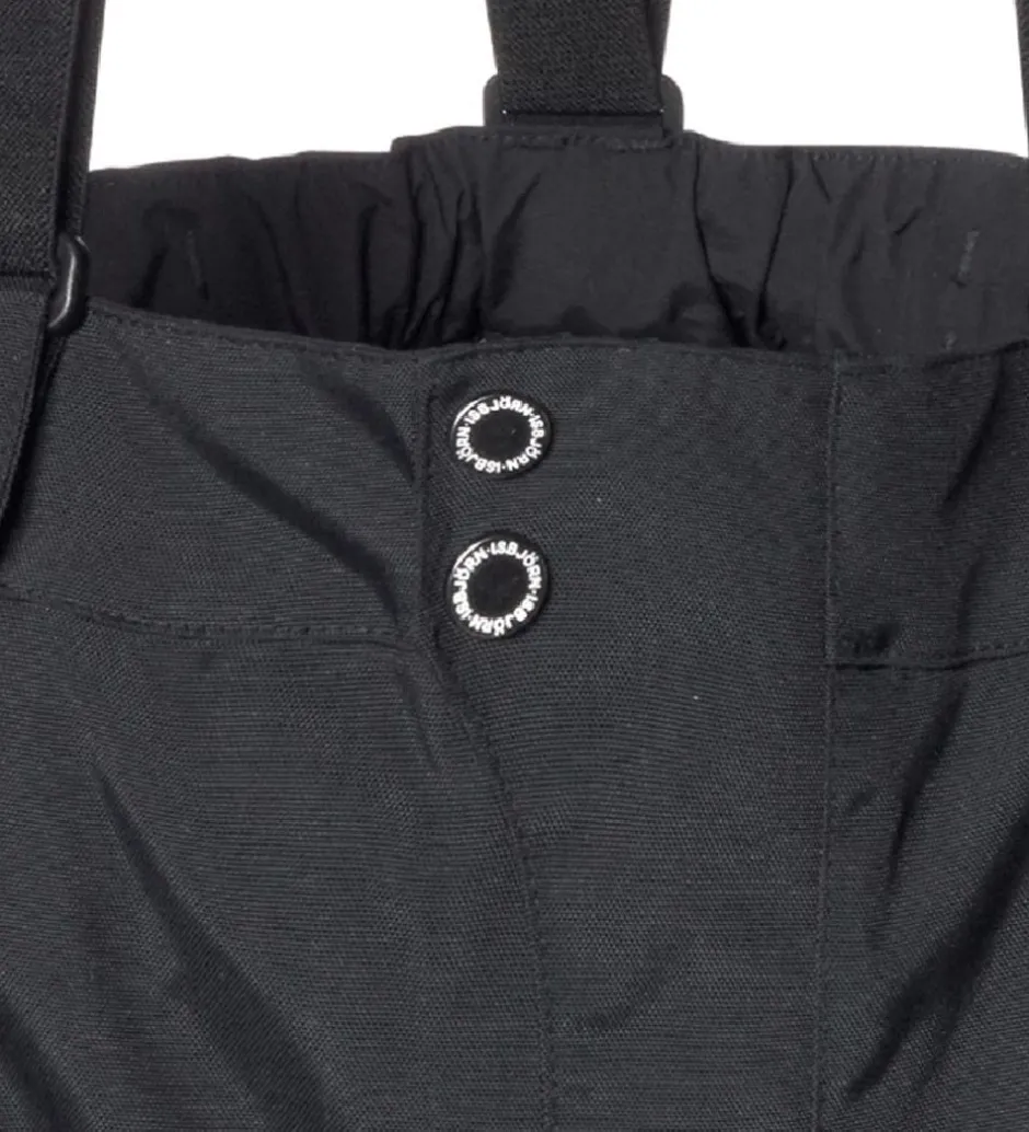 Isbjörn Of Sweden skalbukserne åbnes fortil med to trykknapper og en lynlås i livet. I benåbningerne har de elastikkanter med indvendig gummibelægning. Der er også aftagelige, justerbare støvlestropper i gummi, som der medfølger én ekstra af. Benåbningerne kan i øvrigt løsnes op ved hjælp af en lynlås på ydersiden. Når lynlåsen er lukket, sikres den med en trykknap.