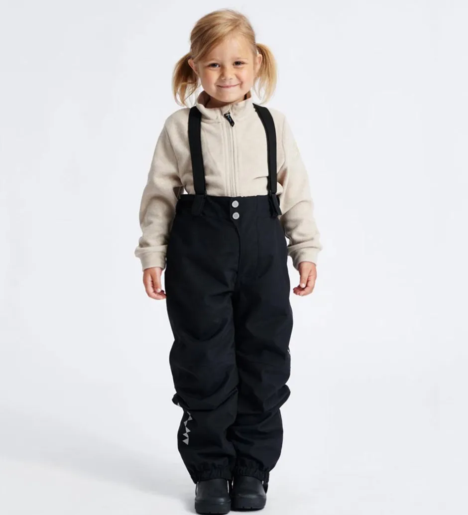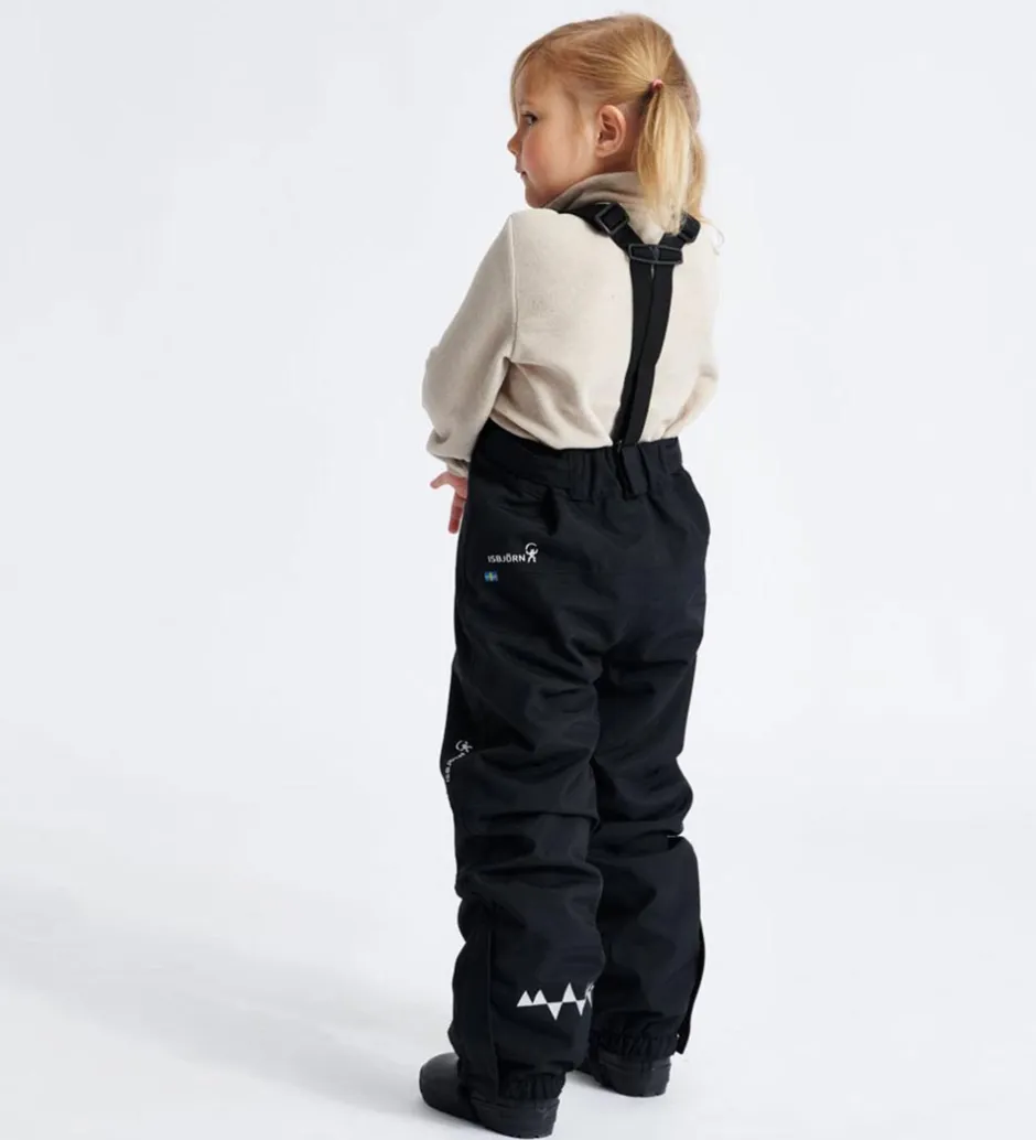 Isbjörn Of Sweden skalbuksene har smarte, justerbare seler, som samles på ryggen. Selerne sidder fast med velcroremme i livåbningen, så de kan tages af. hvis det ønskes. Livåbningen har en elastikkant bagtil og kan desuden justeres ind ved hjælp af velcroremme i siderne.