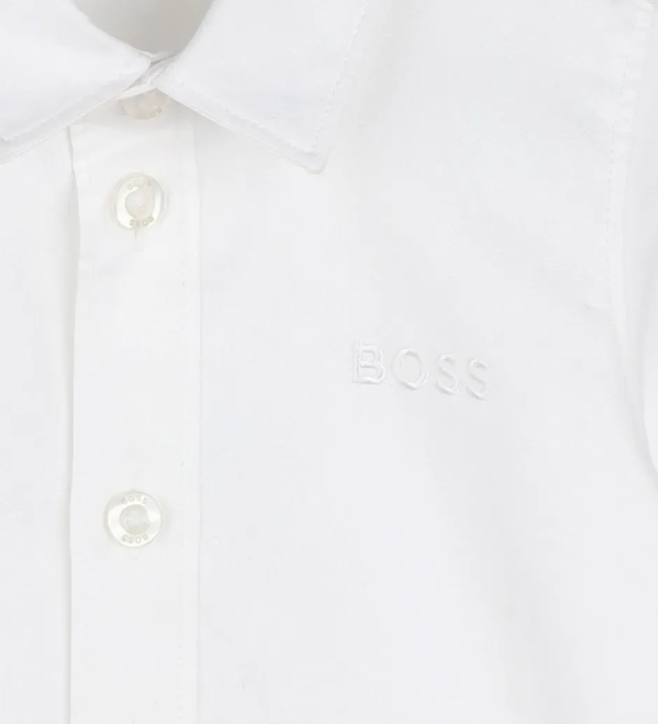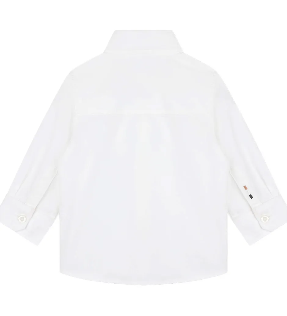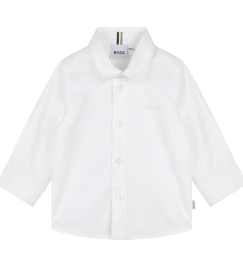 Stilren BOSS skjorte i klassisk hvid med broderet logo diskret placeret på brystet. Skjorten har en traditionel krave og lange ærmer, hvilket giver et tidløst udtryk. BOSS tilbyder med denne skjorte et elegant design, som kan bruges i mange sammenhænge.
