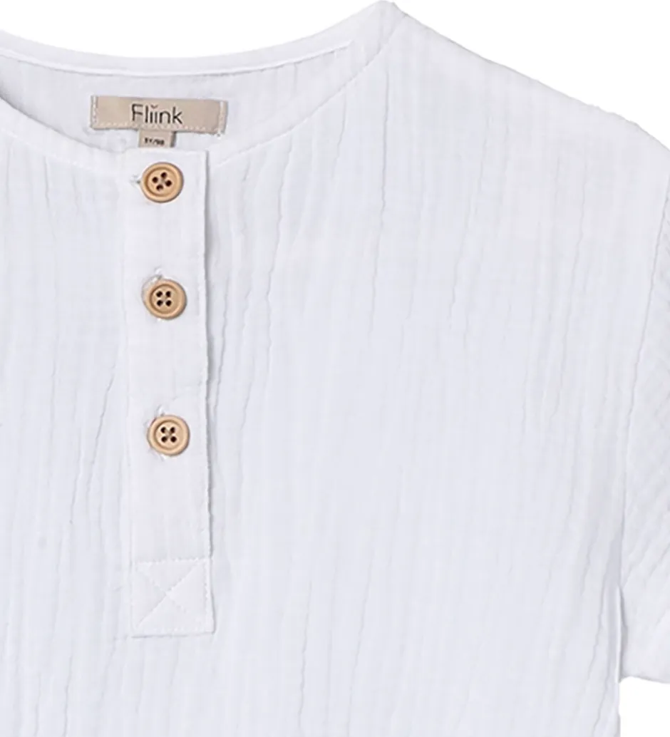 Elegant Fliink skjorte i hvid med korte ærmer. Skjorten har en klassisk knaplukning i fronten, der giver et tidløst look. Fliink har skabt en enkel skjorte, der er let at kombinere med hverdagens outfits.
