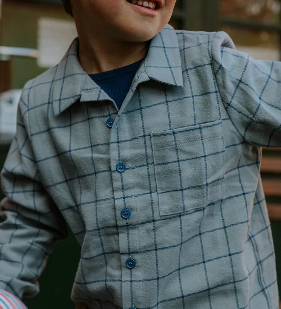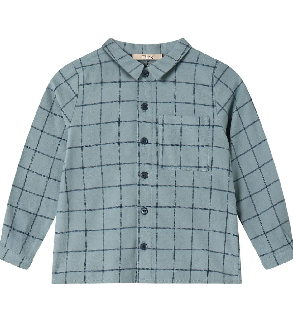 Charmerende Fliink skjorte i en lyseblå nuance med et stilrent, ternet mønster. Skjorten har lange ærmer, en klassisk krave og en praktisk brystlomme. Knapperne er diskrete og matcher skjortens farvetone, hvilket understreger det enkle design fra Fliink.