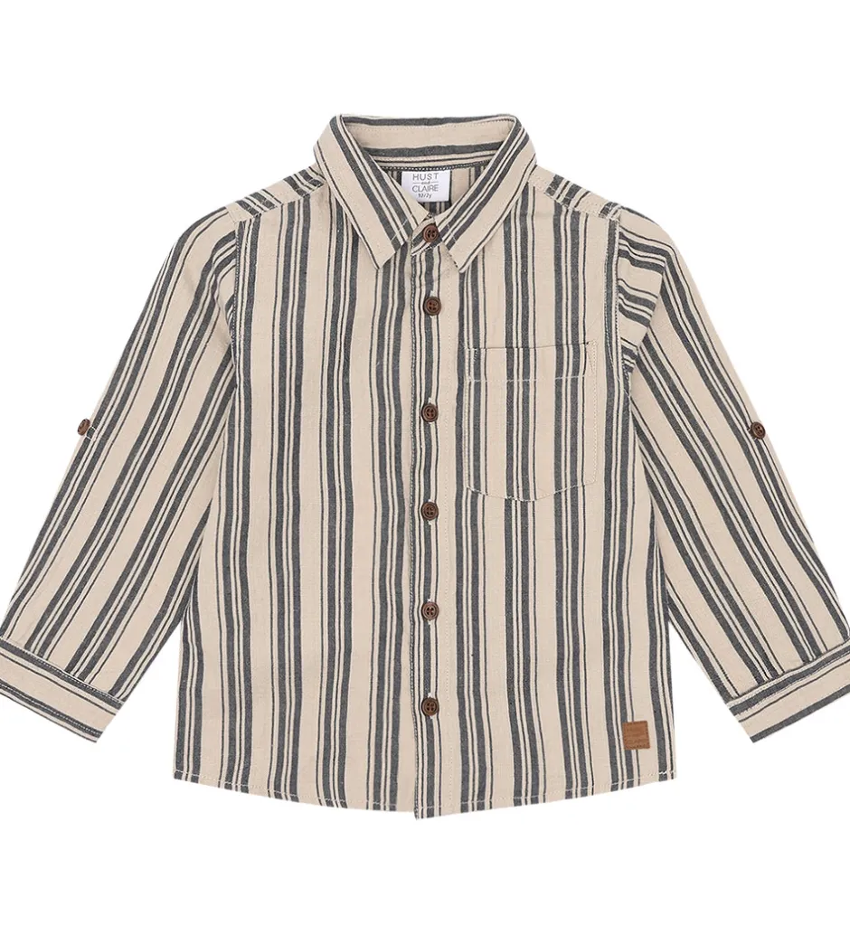 Hust and Claire skjorten har lange ærmer med slids og knaplukning samt en klassisk ombukket krave. Skjorten har en gennemgående knaplukning fortil med knapper i trælook samt en åben brystlomme i venstre side. Skjorten har en knap midt på ærmerne og indvendig strop, så ærmerne kan foldes op, og den er fremstillet i en lækker fastvævet kvalitet.