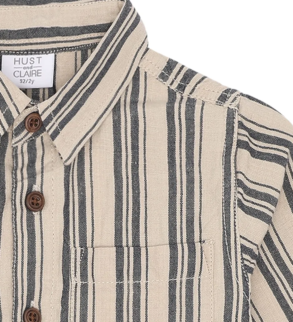 Flot Hust and Claire skjorte i beige med fine sorte striber.
