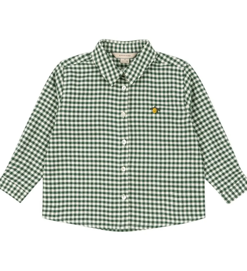 Stilfuld skjorte fra Konges Sløjd med et ternet mønster i hvid og grøn. Konges Sløjd skjorten har lange ærmer og en traditionel krave. Der er en fin citron broderet på brystet, der giver et ekstra touch til designet. Skjorten fra Konges Sløjd lukkes med fine knapper foran.