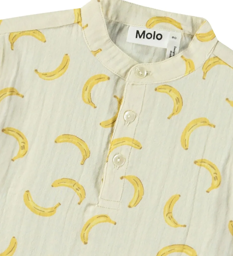 Skøn Molo skjorte i lys beige med et skønt allover bananprint.