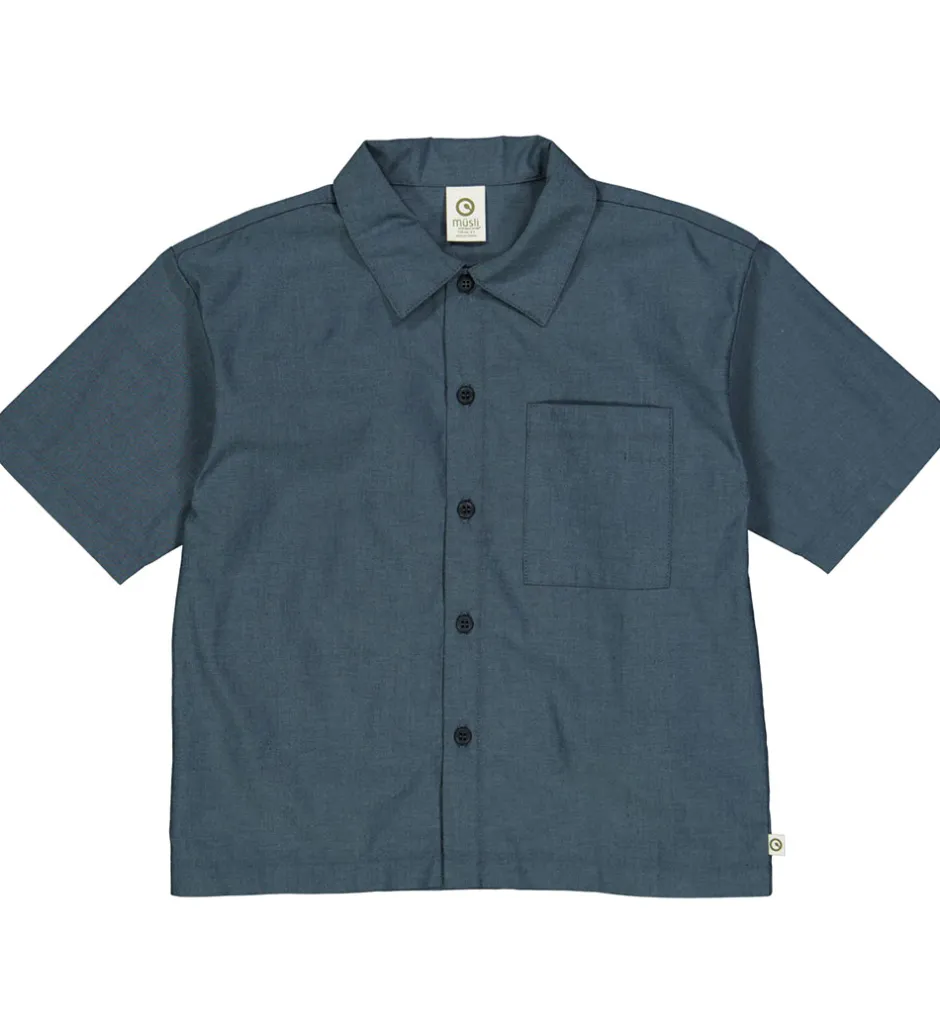 Klassisk Müsli skjorte i en dyb, blå nuance. Müsli skjorten har korte ærmer og en enkelt brystlomme, som giver et stilrent look. Perfekt til enhver garderobe.
