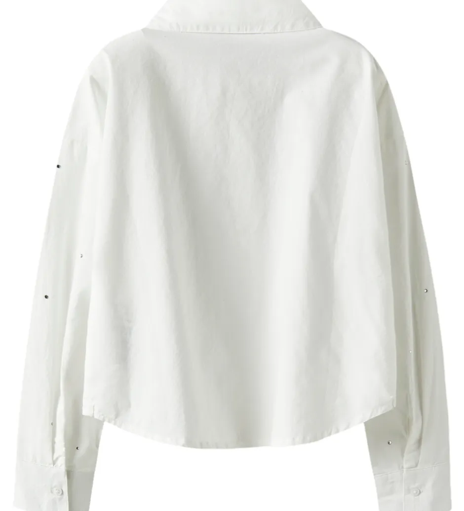 Stilfuld Name It skjorte i hvid med små rhinsten på fronten. Skjorten har en klassisk krave og knapper fortil. Den har lange ærmer med manchetknapper og en boxy pasform.