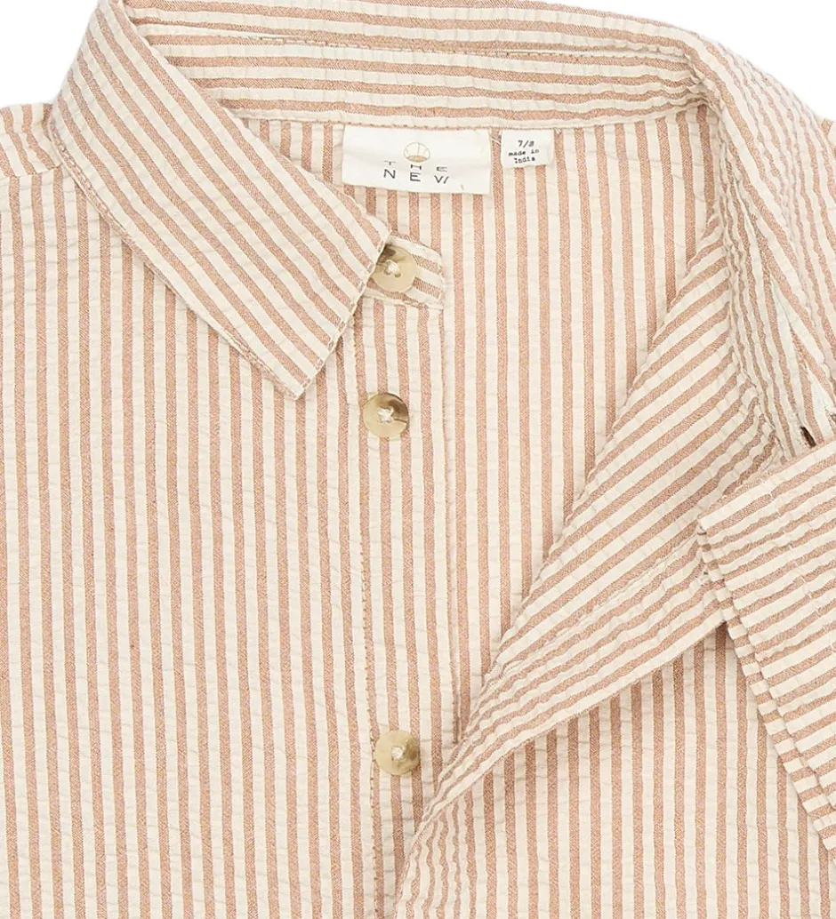 Charmerende skjorte fra The New med fine striber i creme og lysebrun og en fin musselin struktur, hvilket giver et stilrent look til enhver anledning.