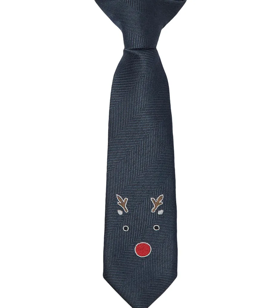 Flot Name It slips i mørkeblå satin med en vævet struktur og med motiv af Rudolph på det nederste stykke.
