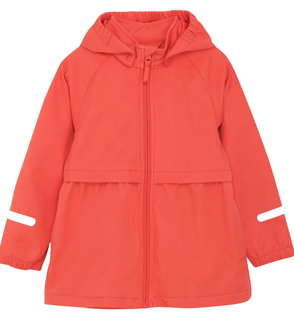 CeLaVi softshelljakken har en aftagelig hætte, som sidder fast med trykknapper, og den har smalle elastikkanter.