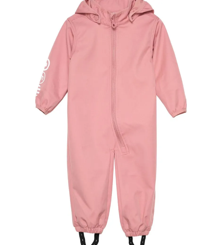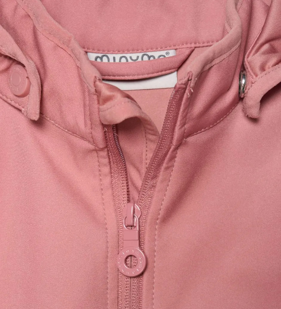 Flot Minymo softshelldragt i ensfarvet gammelrosa. Yderst på højre ærme og på ryggen er der praktiske refleksprint.
