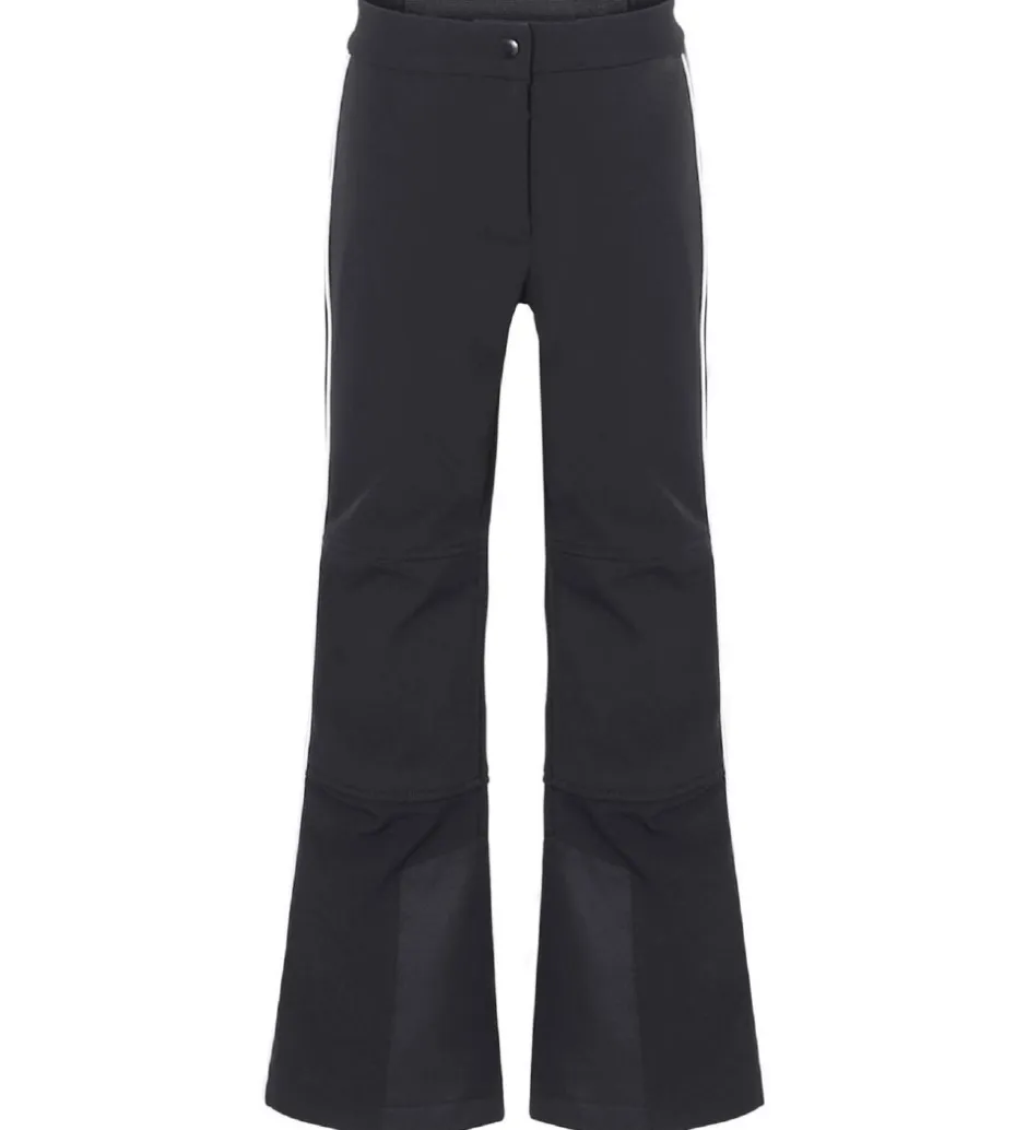 Dejlige Molo softshellbukser i ensartet sort med en firkantet logorefleks nederst på højre ben bagtil.