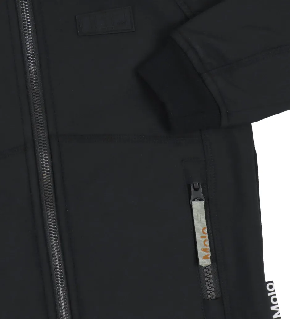 Lækker Molo softshelljakke i ensfarvet sort.