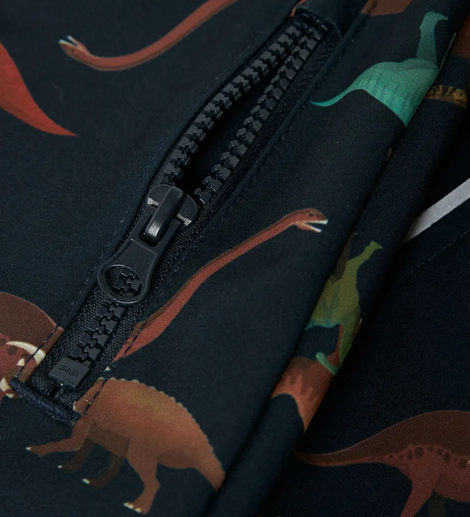 Fin Name It softshelljakke i navy med et farverigt alloverprint af dinoer.