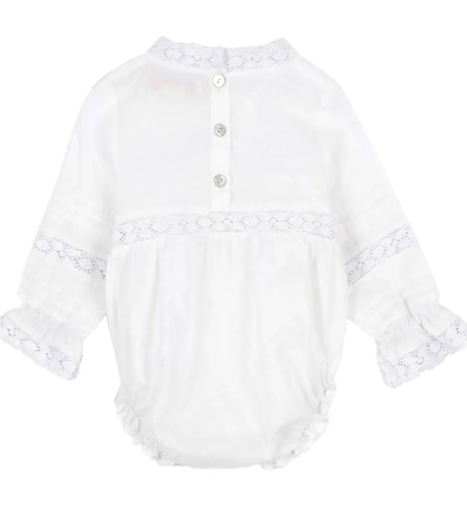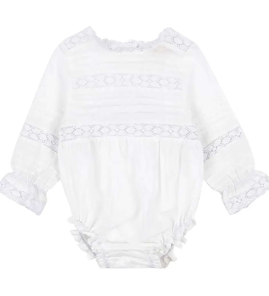 Sød Konges Sløjd sommerdragt i hvid med fine blondedetaljer.