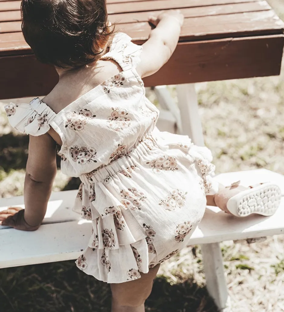 Fin That’s Mine sommerdragt i rosa et alloverblomsterprint i rosa og grønne nuancer.