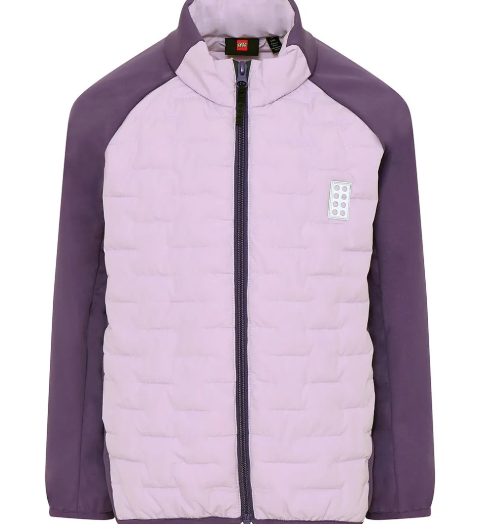 Lækker LEGO® Wear sommerjakke i lyslilla i en glatvævet kvalitet og med et quiltet mønster. Ærmerne og siderne af jakken er lilla i en sporty polyester.