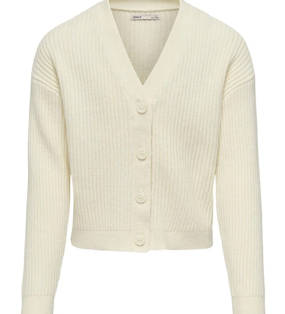 Charmerende Kids Only cardigan i en lys cremefarvet ribstruktur.