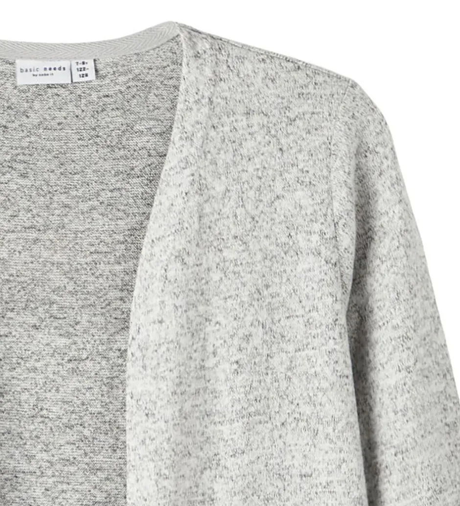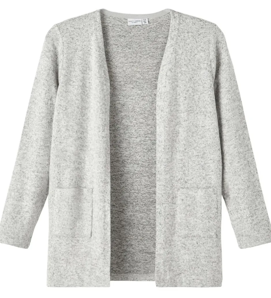 Lækker Name It cardigan i en letstrikket kvalitet i meleret grå.