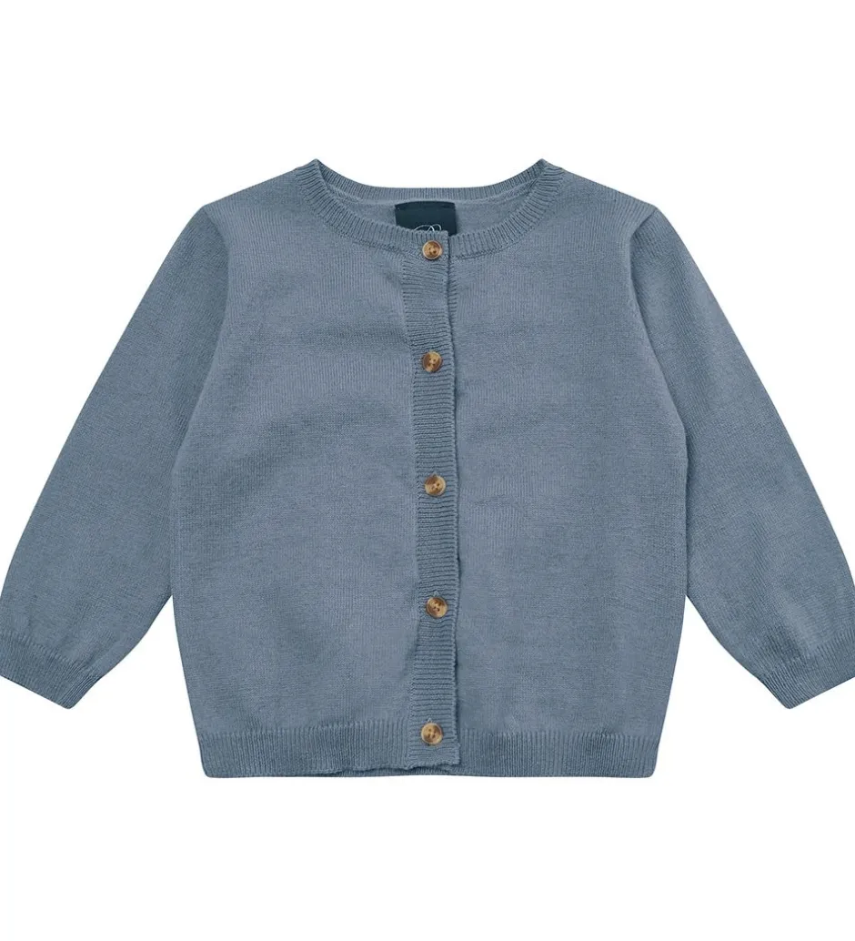 Skøn Petit by Sofie Schnoor cardigan i ensfarvet støvet blå strikkvalitet.