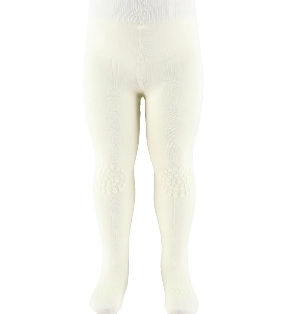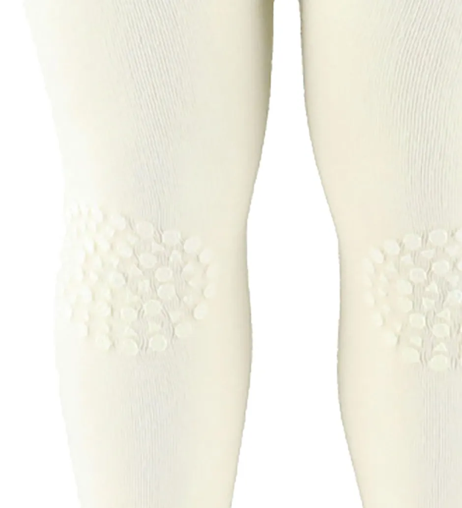 Strømpebukserne har skridsikre dutter både under fødderne, oven på fødderne ved tæerne og på knæene, så barnet nemmere kan kravle over glatte overflader som trægulv eller klinker.