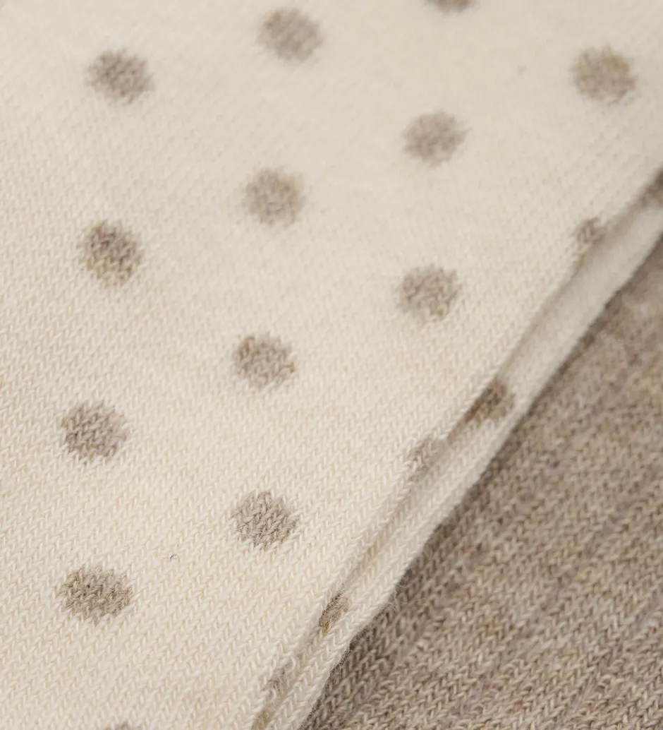 – Prikkede: 58% bomuld, 40% polyester + 2% elastan