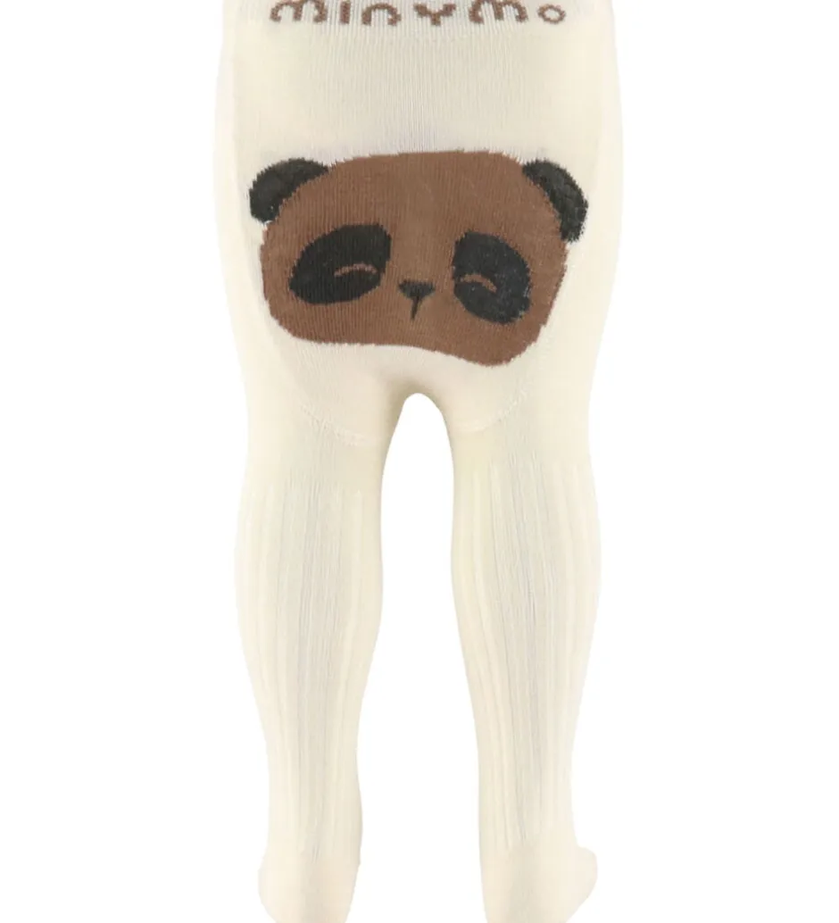 Indbydende Minymo strømpebukser i en flot, ensfarvet creme. Strømpebukserne har et charmerende panda hoved på bagsiden i brune nuancer, som giver et legende touch. De har en elastik i livet som sikrer god pasform og støtte.