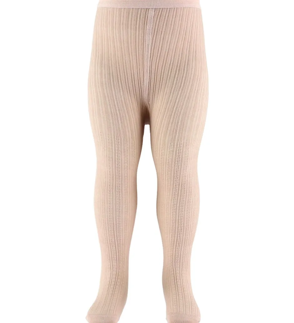 Dejlige MP strømpebukser i ensfarvet støvet rosa, med et flot hulmønster. I taljen er der en smal blondekant.