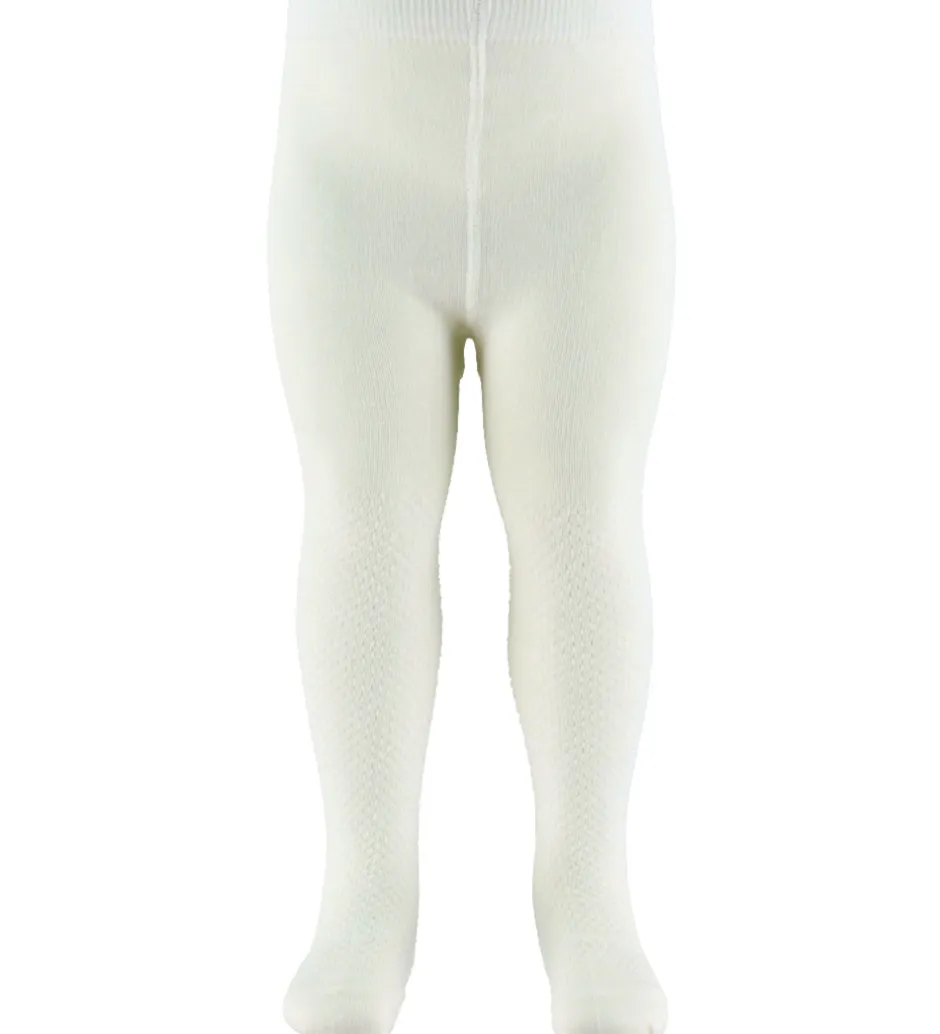 Skønne Name It strømpebukser i hvid med flot struktur. Strømpebukserne har en god elastik i livet, der sikrer en god pasform. Strømpebukserne er fremstillet med 50% merinould.