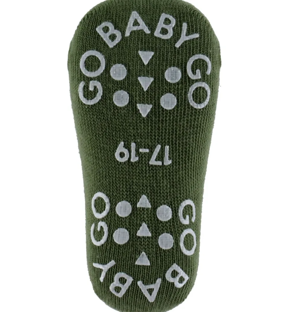Smarte GoBabyGo skridsikre strømper i ensfarvet mørkegrøn.