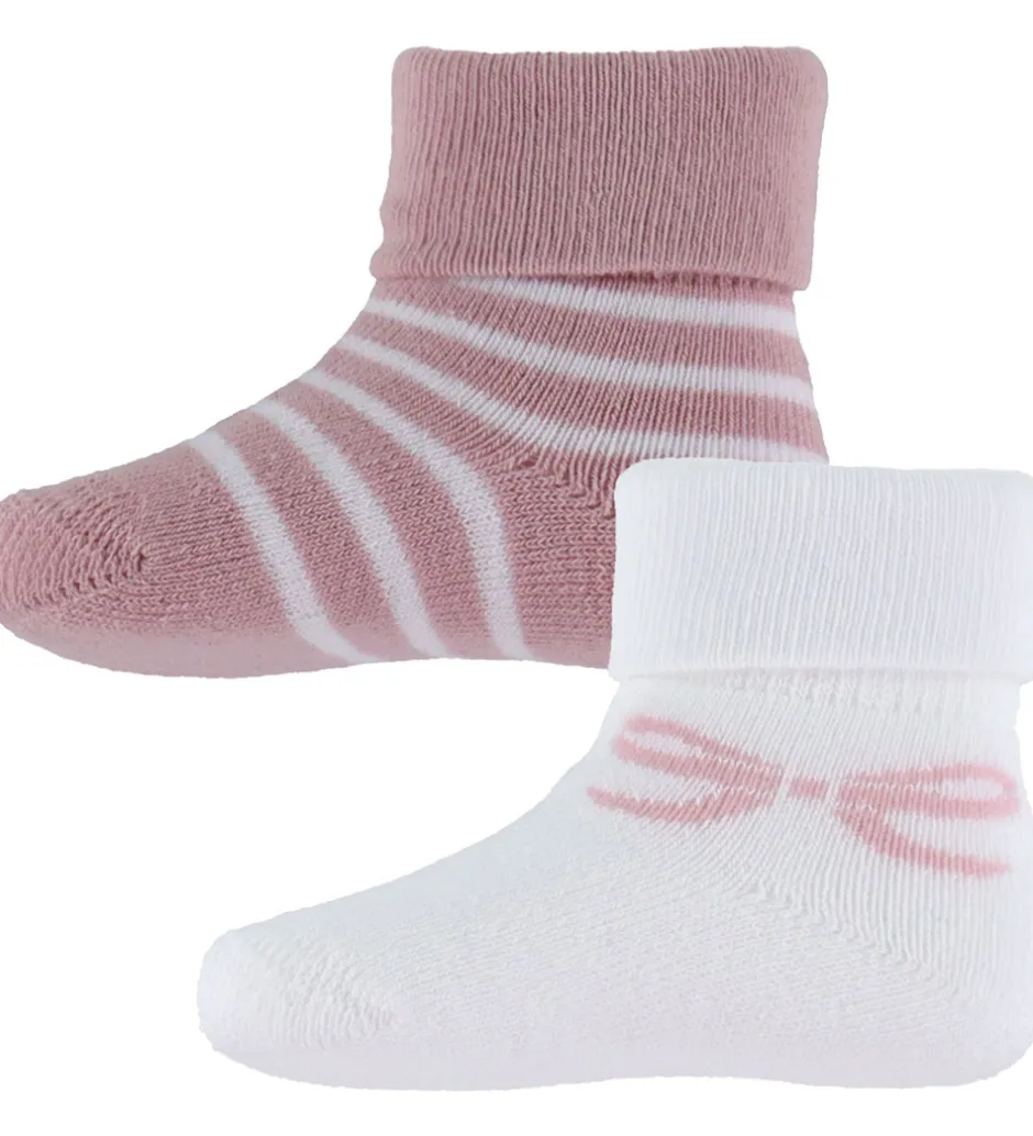 Charmerende Name It strømper solgt i en 2-pak i hvid og rosa. De hvide strømper har en lille sløjfe på forsiden, mens de rosa strømper har fine striber. Name It strømperne har en bred ribkant øverst, der sikrer en god pasform.
