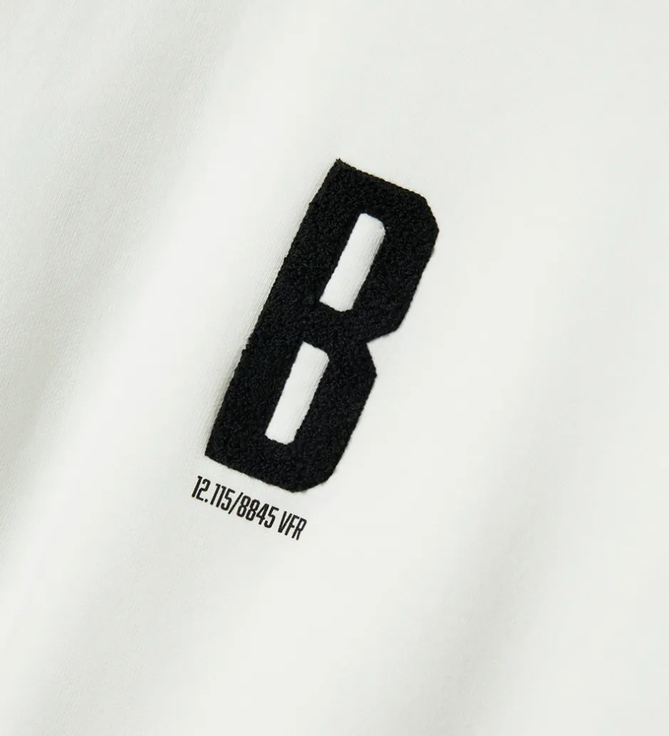 Stilren Name It sweatshirt i hvid med et sort “B” i frotté på fronten samt sort tekstprint. På ryggen er der et sort “9” i frotté. Name It sweatshirten har en rund halsudskæring og lange ærmer med ribkanter. Indvendigt er der blødt, børstet bomuld.