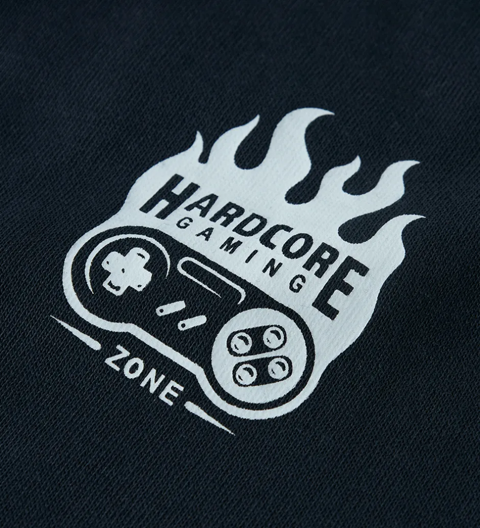 Stilren Name It sweatshirt i en dyb, marineblå nuance med et iøjnefaldende print af et flammende logo-design på brystet. Name It sweatshirten har lange ærmer, rund halsudskæring og brede ribkanter, hvilket giver et moderne udtryk.