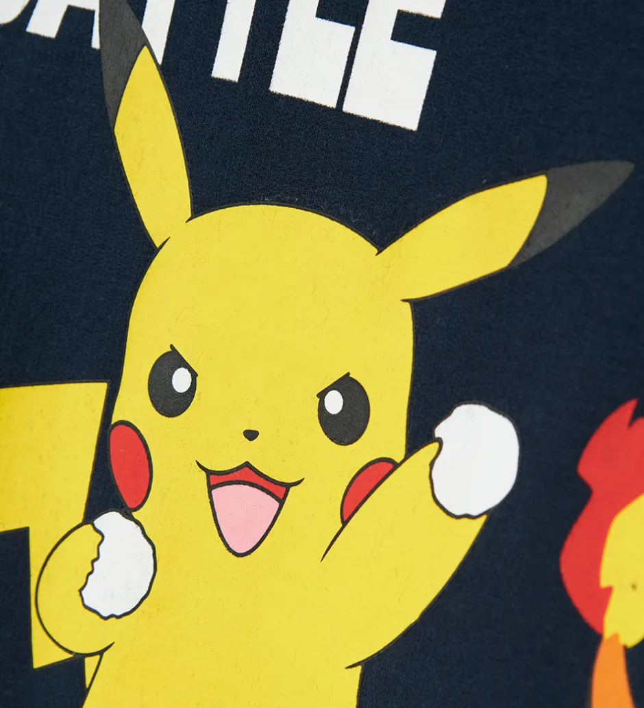 Sej Name It sweatshirt i navyblå med et farverigt print på fronten af fire Pokémon figurer og teksten “Ready For Battle”. Sweatshirten har en rund halsudskæring og lange ærmer med ribkanter. Indvendigt er der blødt, børstet bomuld.
