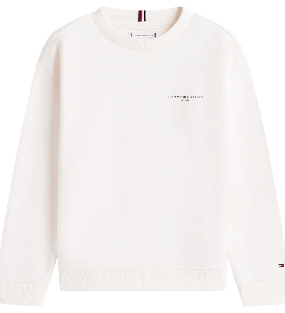 Stilren Tommy Hilfiger sweatshirt i en råhvis nuance. Sweatshirten har lange ærmer, rund hals og ribkanter ved håndled og bund. På brystet ses et diskret Tommy Hilfiger logo, som tilføjer et klassisk præg.