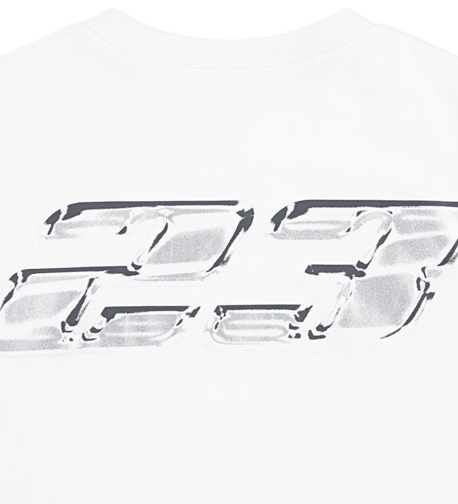 Fin Jordan t-shirt i hvid, og fortil står der “Jordan” tryk i grå og sølv. På ryggen er der et stort print med tallet “23” i grå og sølv. Jordan t-shirten har korte ærmer og en smal ribkant i halsåbningen. Jordan t-shirten fremhæver enkelthed og elegance med sit minimalistiske design.