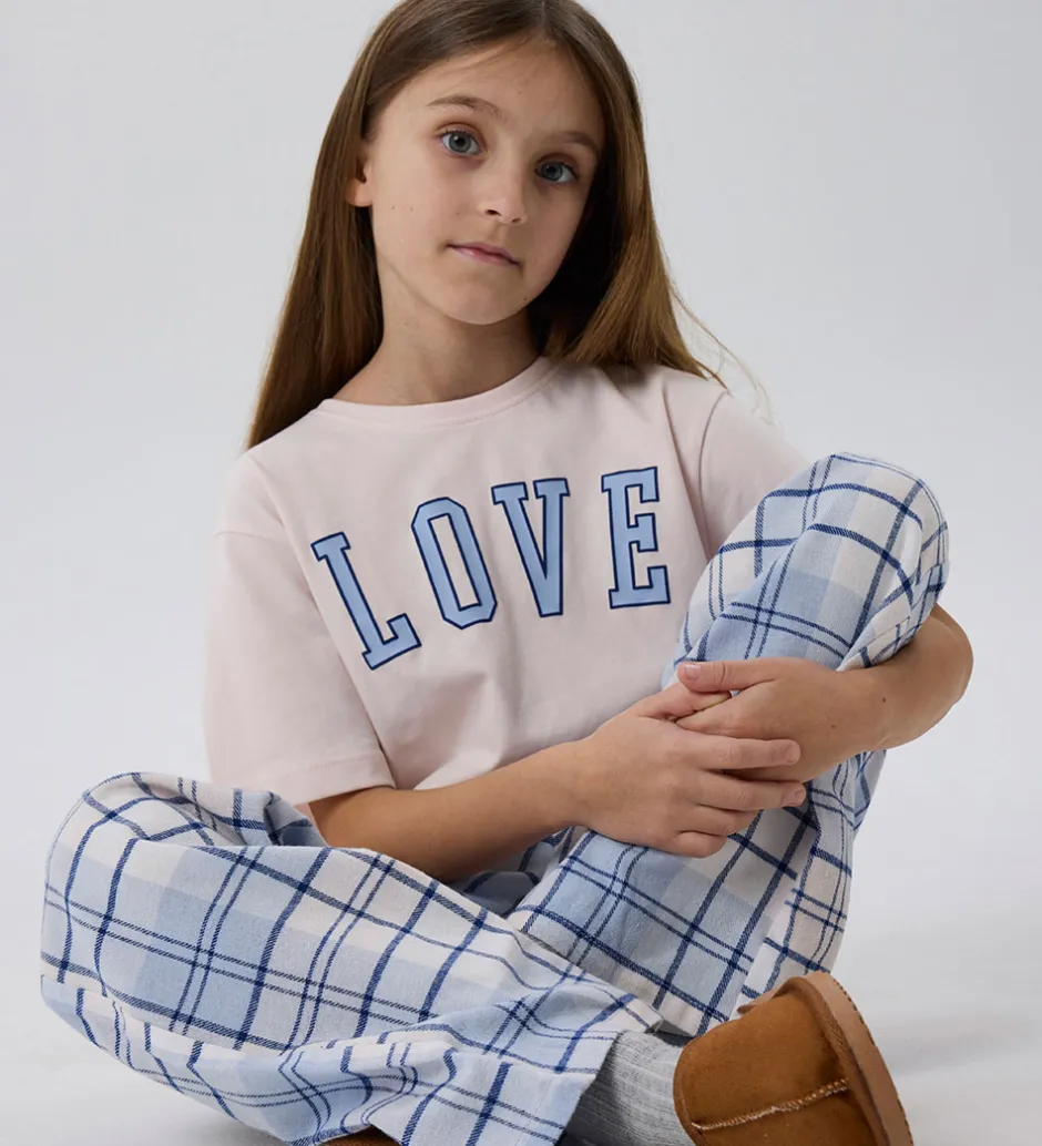 T-shirten har et fremtrædende print på fronten med ordet “LOVE” i blå bogstaver, der giver et flot udtryk til designet. Name It t-shirten er udstyret med en rund halsudskæring og en smal ribkant, der understreger dens enkle stil.