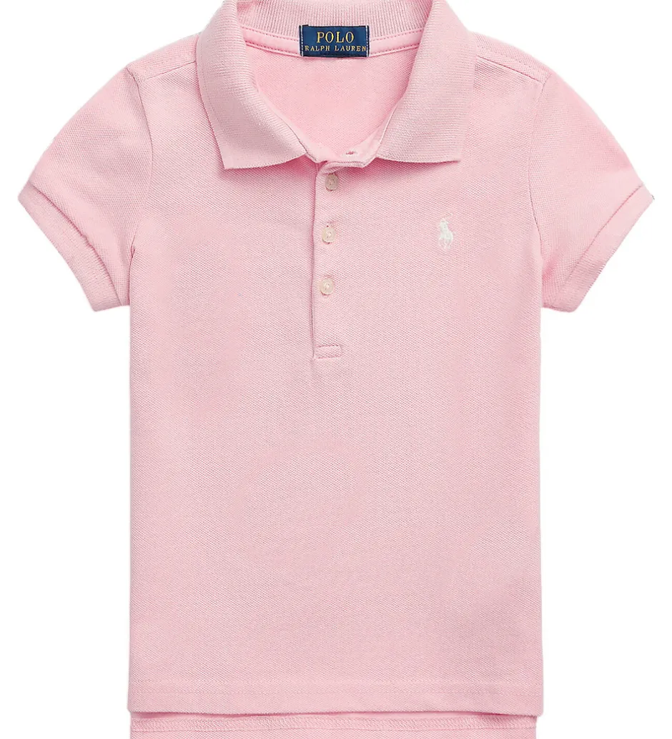 Stilfuld Polo Ralph Lauren polo med korte ærmer i sart rosa piqué. Poloen har et klassisk snit med brandets ikoniske logo broderet på brystet, der fuldender det elegante design. Poloen har korte ærmer med smalle ribkanter, og den lukkes fortil med en stolpelukning med hvide knapper.