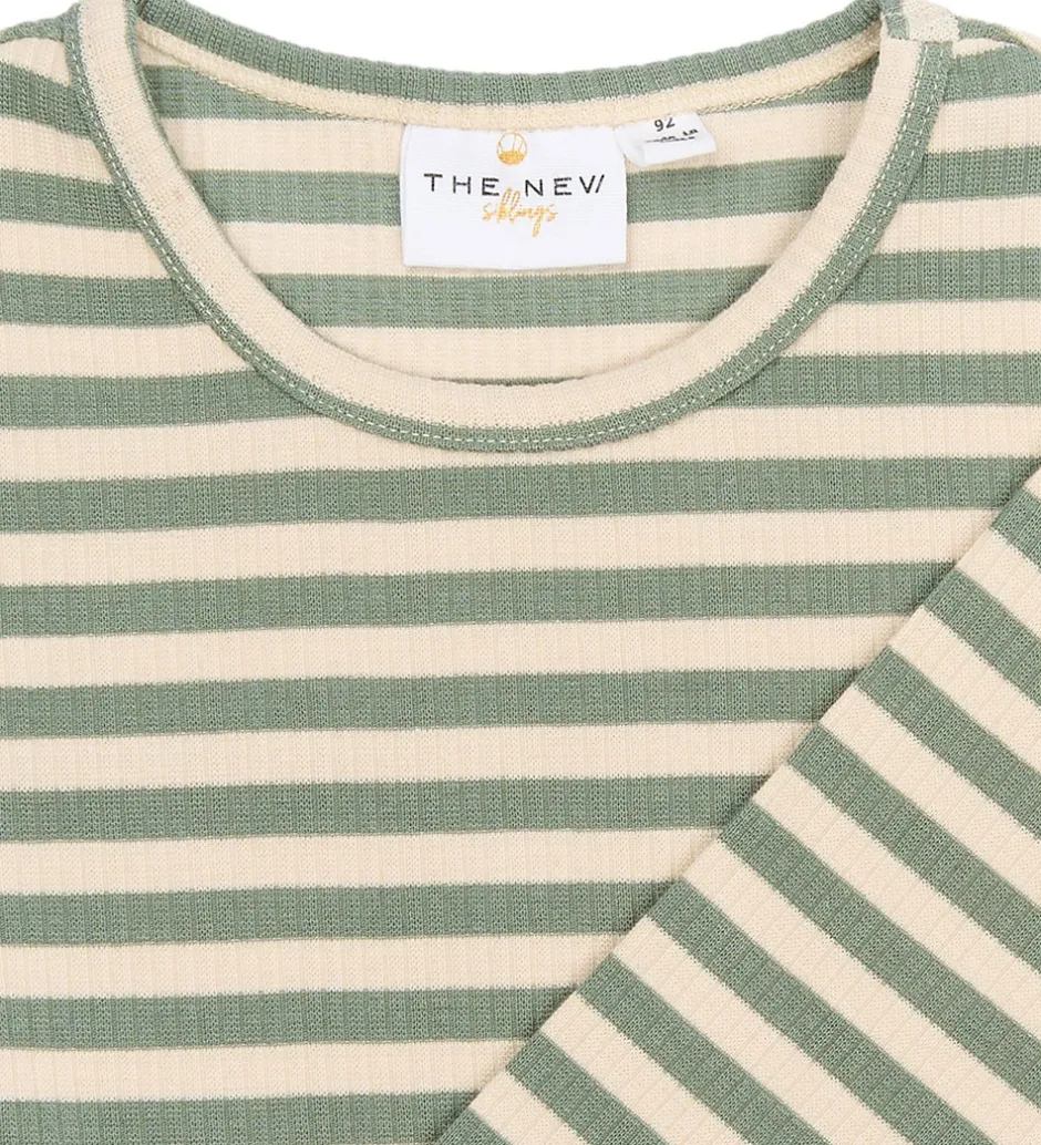 Charmerende bluse fra The New Siblings med et klassisk, stribet design i grøn og hvid, og med en lækker ribstruktur. Blusen har lange ærmer og en rund halsudskæring, som giver en elegant finish. The New Siblings bluse er en stilren tilføjelse til garderoben.