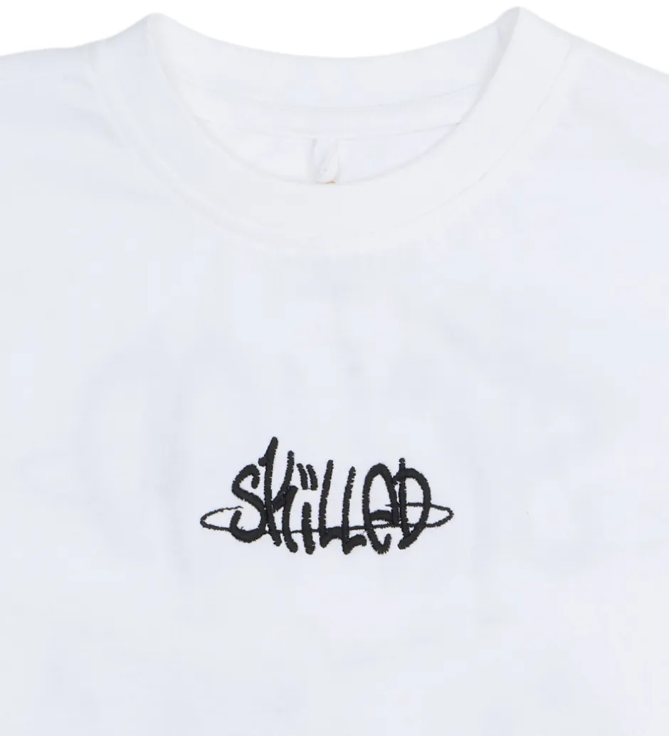 T-shirten har et unikt print på forsiden og ryggen med teksten “SKILLED”, som giver et stilfuldt udtryk. The New t-shirten er designet med rund halsudskæring og korte ærmer, der tilføjer et klassisk look. Den enkle og elegante farve gør t-shirten alsidig i brug.