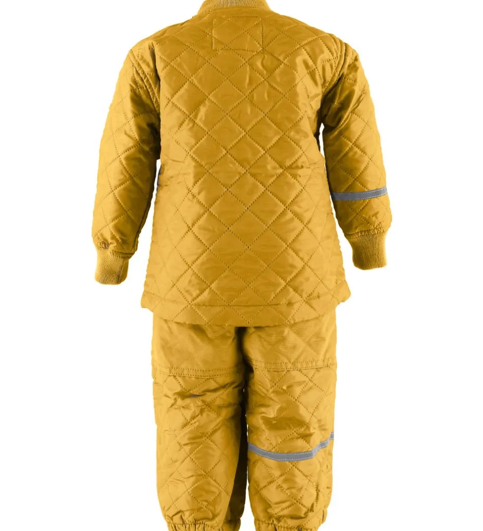 Smart CeLaVi termotøj bestående af en jakke og et par bukser i karry med et flot quiltet design.